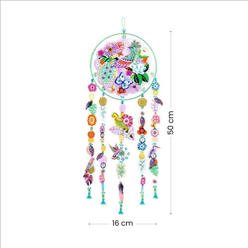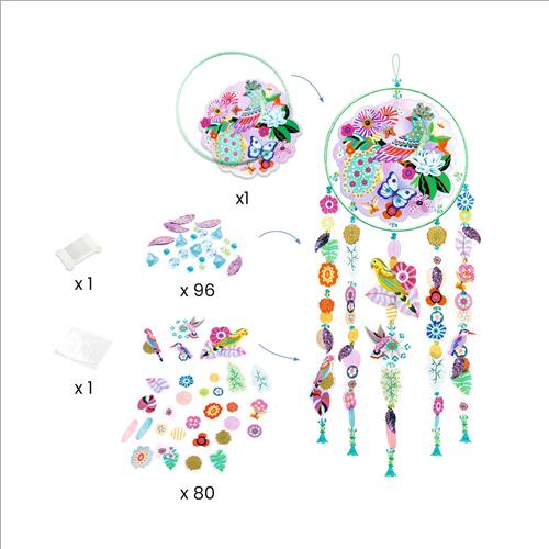 Un kit creativo completo per realizzare un poetico acchiappasogni. Il bambino decora l’anello con tutti i pezzi del kit: forme decorative, perle, nastri, palline trasparenti. Un bellissimo oggetto decorativo da appendere nella cameretta accanto a unafinestra per catturare la luce e dare un tocco di Feng Shui alla casa.