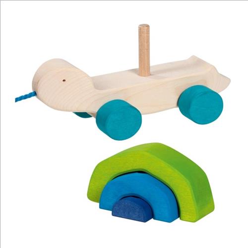 Questa piccola tartaruga può essere trascinata dal bambino e diventa anche una torre per le costruzioni. La sua corazza è