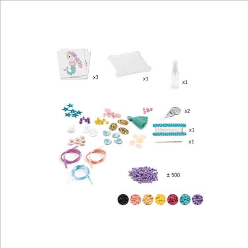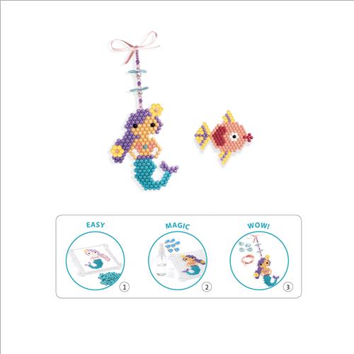 Sovrapponi alla base presente nella confezione la figura da realizzare e disponi sopra, seguendo la figura, le perle, spruzza un po’ di acqua sul ciondolo.