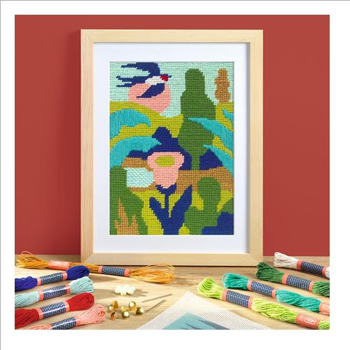 Il ricamo su canovaccio consiste nel realizzare un modello a punti contati su una tela stampata o retina, con l’aiuto di un ago e di fili colorati. Punto dopo punto il modello prende vita, offrendo una creazione ricca di trame e di colori. Un video tutorial vi accompagna in ogni fase permettendovi di imparare i gesti corretti. Da scoprire in piena libertà, a casa propria, al proprio ritmo, per un’esperienza di svago inedita.