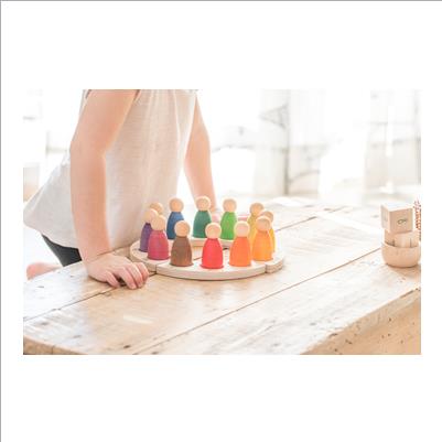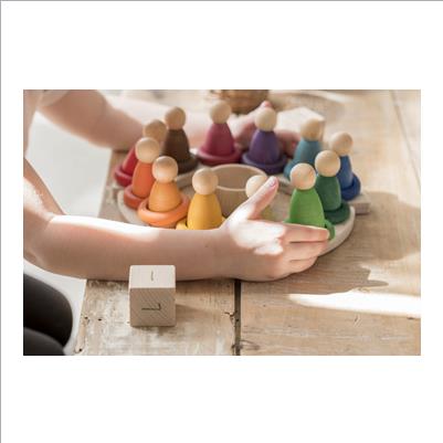 Contiene 12 Nins ® in 12 colori differenti secondo il metodo pedagogico di Waldorf, per contrassegnare il mese e la stagione dell’anno. Attraverso l’esperienza manuale il bimbo apprende molto più che con il solo senso della vista.