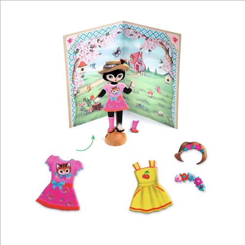 Un’attività di collage per vestire 3 adorabili gatti di legno con più di 45 vestiti, da incollare e ri-incollare come più ti piace! Non ti resta che inventare le storie più belle grazie alle tre scene.