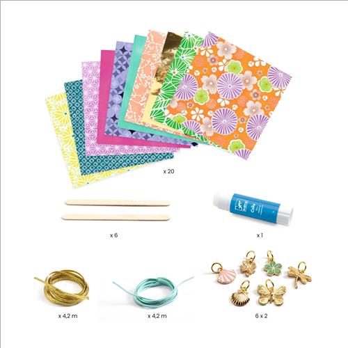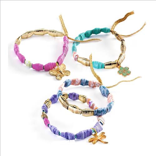 Una scatola creativa per realizzare una moltitudine di braccialetti colorati realizzando da soli le perline di carta. Il bambino taglia i fogli fantasia stampati in strisce, li incolla e poi li avvolge attorno a un bastoncino. Le perline così realizzate sono pronte per essere infilate su un filo elastico per creare graziosi gioielli! Si possono anche usare i charms in dotazione per rendere le creazioni ancora più preziose.