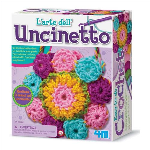 Contenuto: 2 uncinetti, 1 ago in plastica, filati di diversi colori e istruzioni con illustrazioni sia per destri che per mancini.