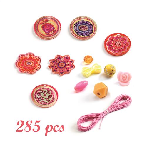 285 perle fantasia a tema fiori. Realizzate in resina colorata sono complete anche di medaglioni e filo per realizzare splendidi gioielli.