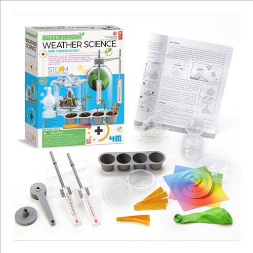 Un kit per capire i fenomeni meteorologici: sperimenta l’elettricità statica che genera i fulmini, crea nuvole, costruisci un plastico per comprendere il ciclo dell’acqua e studia l’effetto serra e le piogge acide.