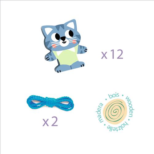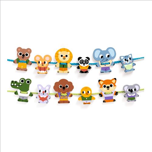 I bambini si divertono ad infilare le perline e ad allacciare i due laccetti, creando un bel girotondo di amici. Ideale a partire da 2 anni per lo sviluppo della manualità fine.