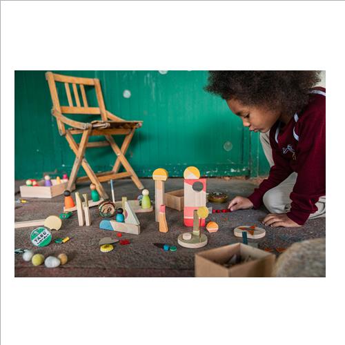 Un set composto da 40 pezzi per costruire il tuo luogo felice e perfetto. Il set consente ai bambini di navigare da soli attraverso tutte le fasi di apprendimento. È una fantastica aggiunta alla narrazione e ai piccoli mondi, fino all’impilamento, al montaggio, all’abbinamento dei colori e… il cielo è il limite con il gioco a tempo indeterminato!