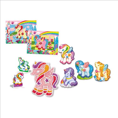 Realizza 6 calamite da frigo unicorno, 2 glitter sand art e una sagoma trasperente di cristallo.