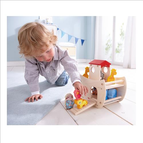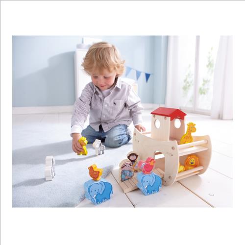 Con questa solida arca i bambini possono rivivere la famosa storia di Noè. Gli animali salgono a bordo in coppia e il viaggio può cominciare. Le figurine di legno hanno una forma studiata con cura e sono facili da afferrare.