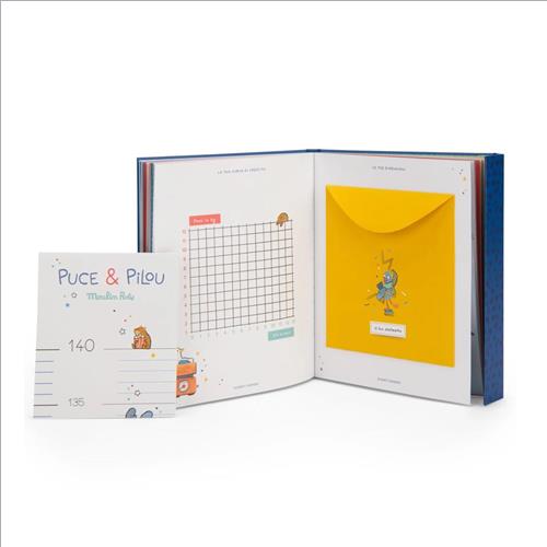 Libro nascita illustrato di 80 pagine per accompagnare i ricordi dalla nascita fino ai 6 anni. Una raccolta di immagini e parole, con 6 buste per custodire i ricordi e 1 metro murale in regalo. Con le grafiche della collezione Pouce & Pilou
