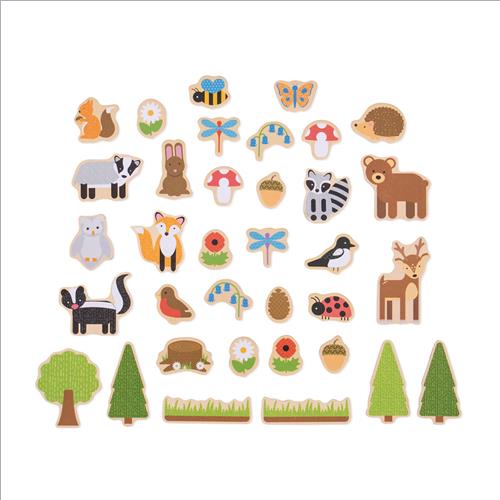 Questi colorati magneti del bosco sono realizzati in legno e hanno il retro magnetico, per portare le meraviglie del bosco nell’area di gioco. Ottimo per incoraggiare la narrazione creativa, questo set da 35 pezzi include animali del bosco, alberi, fiori e altro ancora! Ideale per l’uso con la lavagna magnetica.