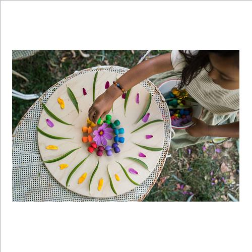 36 pezzi a forma di funghetti in 12 colori arcobaleno per creare mandala e qualsiasi altro gioco senza fine.