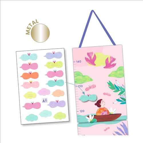 Un grande metro da parete con tanti sticker riposizionabili per immaginare di fare una bella passeggiata in riva al lago. Un bellissimo oggetto decorativo ideale per misurare i bambini man mano che crescono (fino a 1,40 m). E quando il bambino è ormai grande, si può riporre nella sua graziosa scatola per conservare un tenero ricordo.