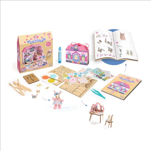 Una collezione che fa scoprire ai bambini e alle bambine la costruzione di universi in miniatura con i loro piccoli e adorabili abitanti da collezionare. Dipingere, assemblare, incollare: il libretto di istruzioni passo passo e un video tutorial forniscono una guida per ogni tappa, permettendo ai bambini e alle bambine di esplorare diverse tecniche creative divertendosi. Una volta terminata l’attività, la casetta diventa un vero e proprio scrigno: si chiude per proteggere il piccolo personaggioe tutti i mobili e gli accessori realizzati. Ludico ed educativo, questo kit stimola la concentrazione, la logica e la precisione e, al contempo, lascia spazio all’immaginazione e ai sogni.
