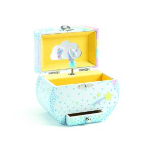L’unicorno si mette a girare a suon di musica quando si apre la scatola. Provvisto anche di un pratico piccolo cassetto.