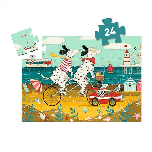 Ollie il dalmata trascorre la giornata in spiaggia con i suoi genitori. Questo puzzle colorato da 24 pezzi è racchiuso in una graziosa scatola sagomata a forma di cane.