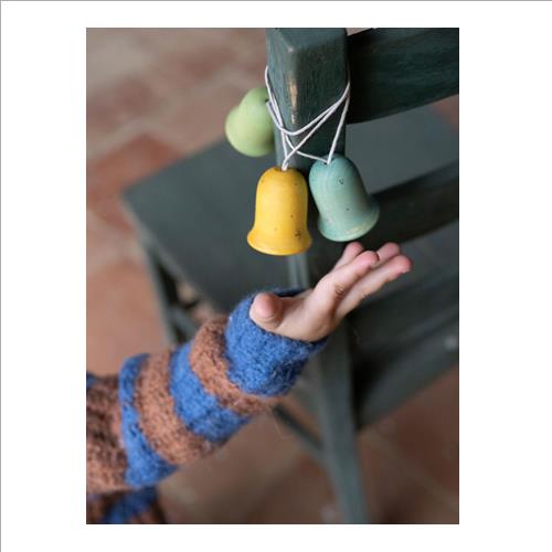 La scatola Nº3 contiene 3 pezzi a forma di campana, dipinti a mano (include filo per appenderli).