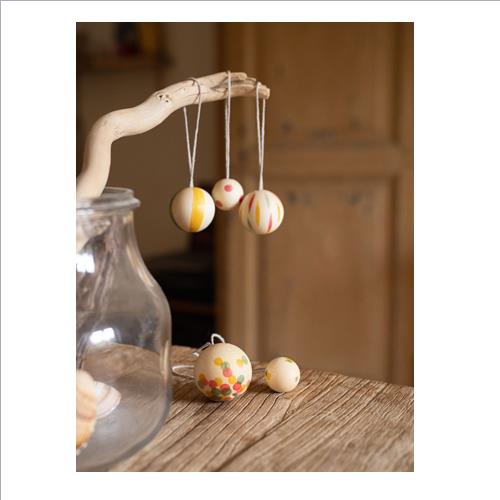 La scatola Nº5 contiene 5 pezzi di forma sferica, dipinti a mano (include filo per appenderli).