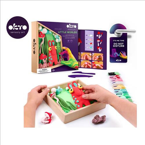 cornice in legno(21 cm x 21 cm), istruzioni per la modellazione, attrezzi per modellare, 6 pezzi di pasta di diversi colori, messaggio appeso per la porta NON DISTURBARE .