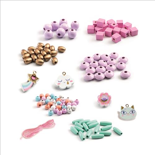 400 perle realizzate in legno, con piccoli ciondoli e il filo, per creare splendidi gioielli.