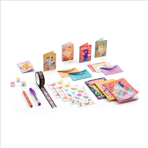 Un mini set di cartoleria con belle illustrazioni della savana. Gli scrittori in erba si divertiranno a scrivere idee e pensieri o a disegnare e decorare con gli adesivi. Lovely Paper di Djeco, una collezione di cartoleria raffinata e delicata con graziose illustrazioni.
