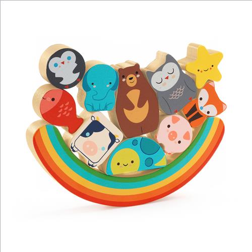 Puzz & Boom è un puzzle in legno facile da assemblare e un gioco di equilibrio. Gli animali in rilievo restano in piedi e possono restare in equilibrio gli uni sugli altri per formare una piramide sulla base a forma di arcobaleno.