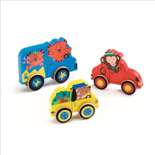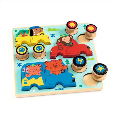 Puzz & Roll è un gioco 2 in 1: un puzzle di legno e un gioco che avanza sulle ruote. Il bambino o la bambina assembla le ruote all’animale dello stesso colore e lo fa avanzare. Gioca poi a sostituire tutto sul supporto e ricomincia!