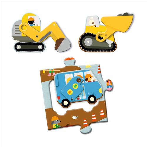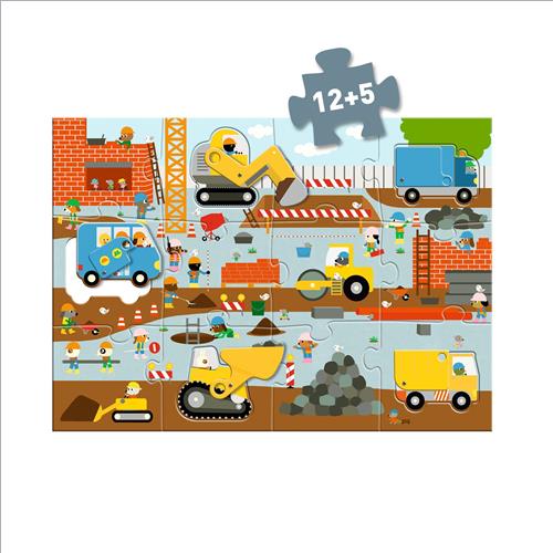 Questo puzzle prende vita grazie ai 12 pezzi giganti snodabili. Il bambino e la bambina assembla ciascun pezzo per ricomporre un cantiere dinamico nel quale potrà posizionare l’escavatore, l’autobus e il camion al loro posto. Un’attività accattivanteche combina riflessione, manipolazione e immaginazione!