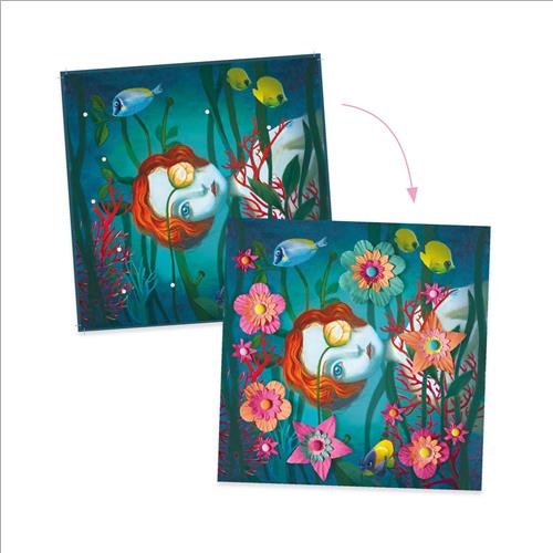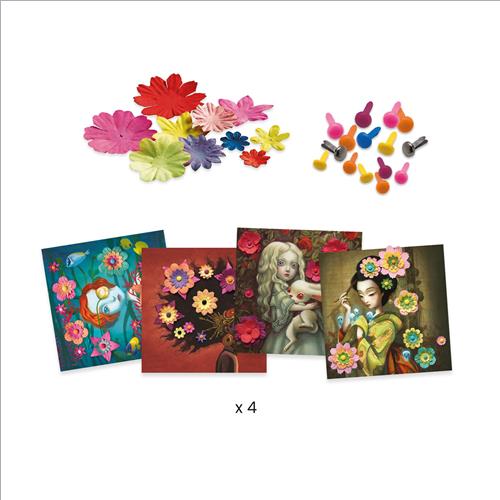 Per completare i quadri, il bambino o la bambina ha a disposizione tantissime corolle di carta che può assemblare facilmente grazie a graziosi fermacampioni colorati. Magnifici fiori di ogni tipo per decorare i ritratti di 4 eroine sublimi e misteriose. Dalle incredibili immagine illustrate da Benjamin Lacombe