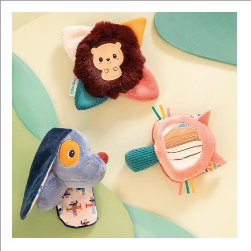 Questo set di 3 sonagli in tessuto è adatto fin dalla nascita: un regalo ideale, che risveglierà i sensi e stuzzicherà la curiosità dei più piccoli. Presentati nella loro graziosa scatola illustrata, questi giocattoli per il risveglio sensoriale stimolano 3 sensi: vista, tatto e udito. Jules il cane e le sue lunghe orecchie, che producono un divertente fruscio, Jeanne la gatta e i suoi baffi colorati, con il suo specchietto per osservarsi, e Léon il riccio rotondo, che offre diverse texture da scoprire a portata di mano.