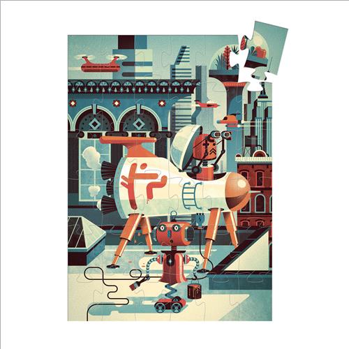 Bob il robot nel bel mezzo della pittura spaziale. Un bellissimo puzzle di 36 pezzi a forma di robot.