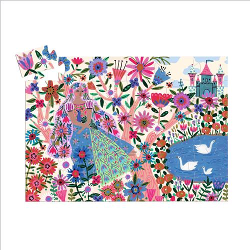 La graziosa principessa si riposa sulla riva del fiume in compagnia del suo pavone colorato. Un magnifico puzzle di 36 pezzi in un’elegante scatola a forma di principessa.