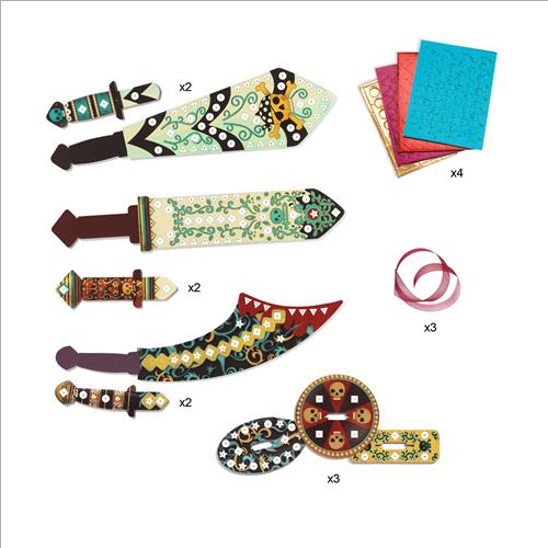Un gioco creativo con spade dei pirati da decorare con tasselli adesivi. I bambini incollano sulle spade gli adesivi metallizzati corrispondenti ai numeri indicati. Una volta terminato, si parte verso fantastiche avventure nell’affascinante mondo deipirati!