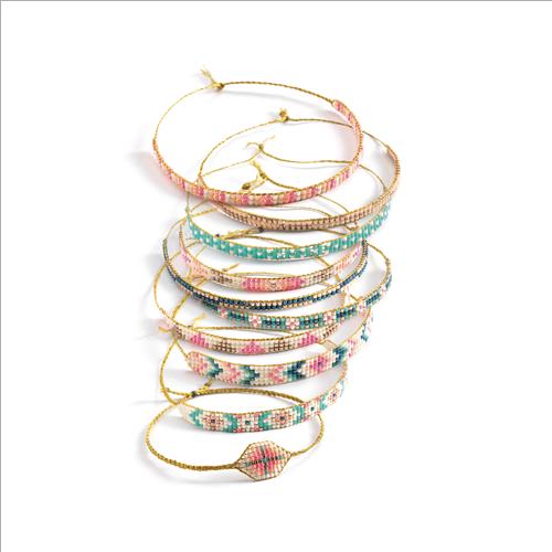 Un bel telaio, perline, fili dorati e aghi per creare degli splendidi braccialetti.
